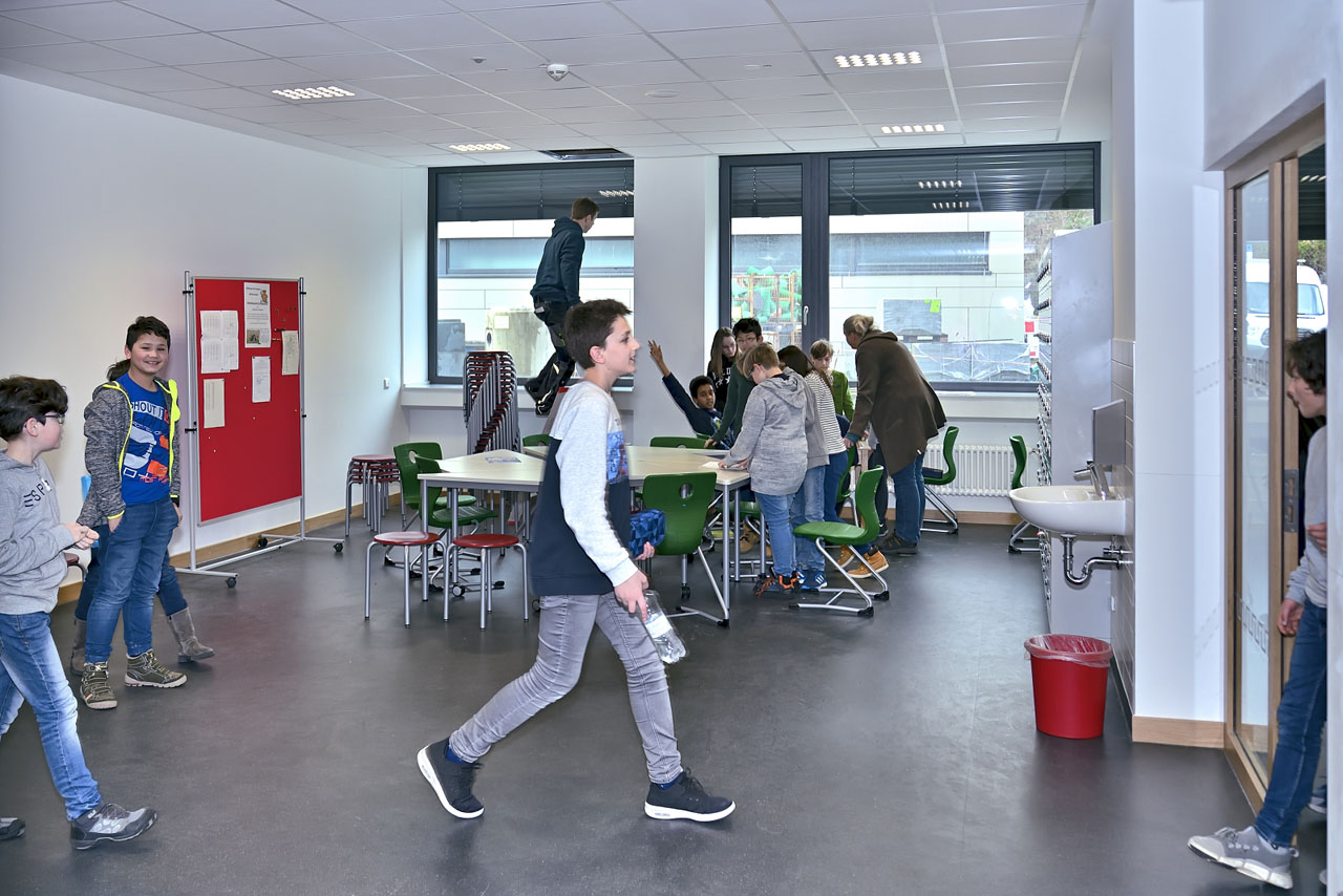 - Mehr Öffnung zum Quartier: Großteil des Schulhofs auch für die Öffentlichkeit, Mehrzweckraum und Aula nicht nur für Schulveranstaltungen